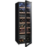 | Nom du produit | Cave à vin de vieillissement – LA SOMMELIERE – CTVNE147 – 147 bouteilles – Porte vitrée – Classe G – 54,5 x 60,4 x 167,4 cm – Noir |